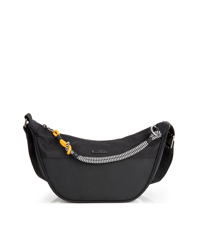 Torba brenda Gabol u crnoj boji, moderna je ženska torba koja se lako uklapa sa mnogim odevnim kombinacijama. Kvalitetni materijali i vrhunska izrada garantuju dugotrajno korišćenje. Karakterišu je više unutrašnjih pregrada i podesiv kaiš. Ženska torba je izrađena od kvalitetnog materijala. Dimenzije ženske torbe su 32x9x18cm.